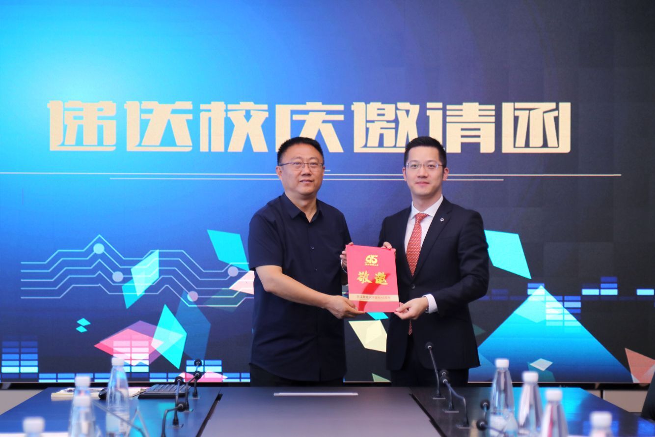 交流會最后,李占榮副校長為王練文總經理及浙財學子代表梁一鳴送上了四十五周年校慶邀請函,誠邀公司領導及全體財經學子參加學校四十五周年慶典。
