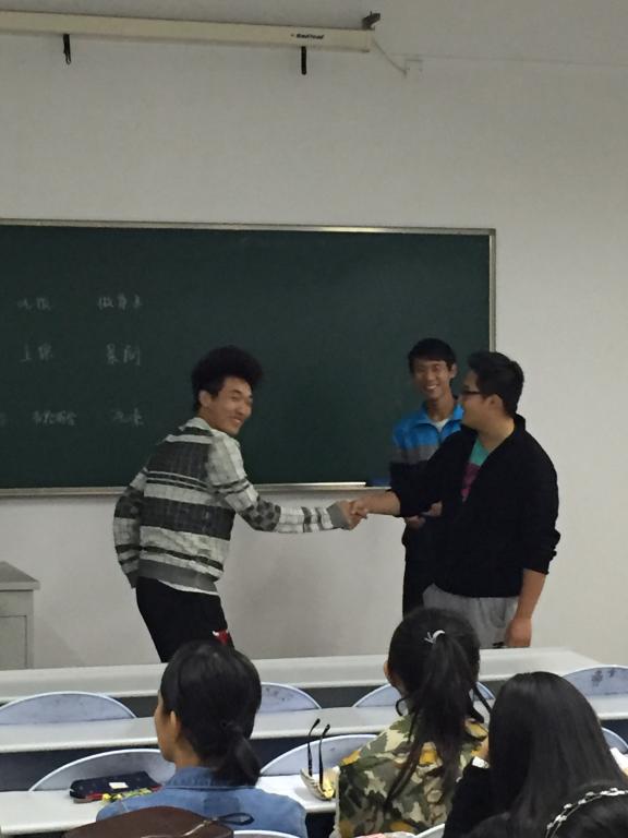 班導余程子蘊簡短的開場白拉開了活動的帷幕。接下來,數學與統計學院“十佳”歌手韓潤澤、齊安吉的傾情獻唱,營造了熱烈的活動氛圍。就在同學們還沉醉在剛才的歌聲中時,驚險刺激的“踩地雷”小游戲頓時讓同學們的神經緊繃了起來,將活動推向了高潮。游戲失敗的同學被要求表演一個小節目,并要總結自己近兩個月來的“100天新生訓練營計劃”的實施情況。這種娛樂與發言交互進行的方式不僅使整個活動更妙趣橫生,還讓同學們體會到了“100天新生訓練營”對其加強自我管理、合理調配時間所起到的巨大促進作用。