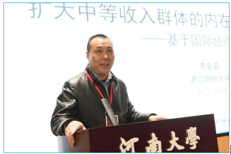 統計學科負責人、校黨委書記李金昌教授應邀作了題為“擴大中等收入群體的內在邏輯與路徑選擇”的特邀報告。李金昌教授在報告中界定了中等收入群體的基本內涵,深度剖析了擴大中等收入群體的內在邏輯,并探索了擴大中等收入群體的有效路徑。