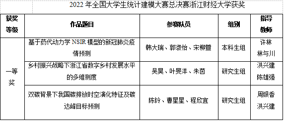 8月26日至28日,第八屆全國大學生統計建模大賽總決賽在成都落下帷幕。經過激烈角逐,共產生本科生組一等獎40項,研究生組一等獎20項,我校入圍總決賽的3支隊伍均獲得一等獎的優異成績,其中本科生組榮獲全國一等獎1項,研究生組榮獲全國一等獎2項。
