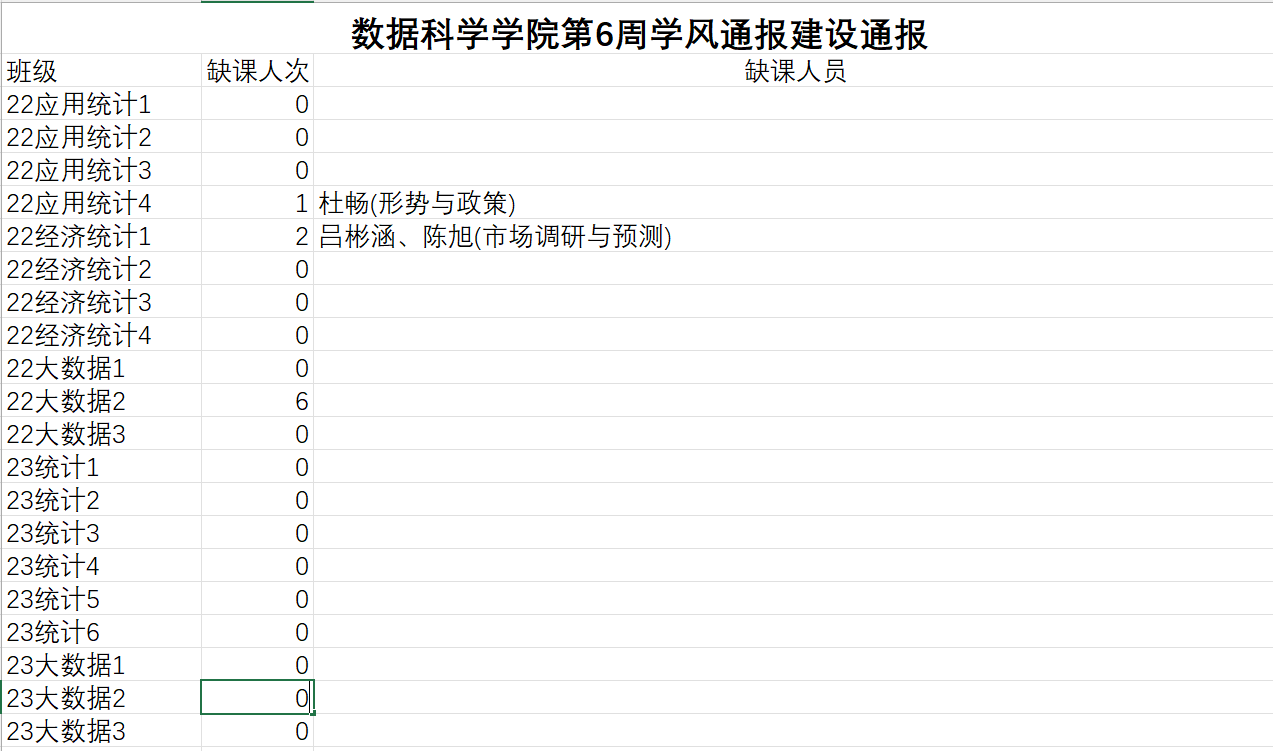 進(jìn)一步培育優(yōu)良學(xué)風(fēng),構(gòu)建我院學(xué)風(fēng)建設(shè)的長效機(jī)制,營造良好的學(xué)習(xí)氛圍,推進(jìn)內(nèi)涵建設(shè),構(gòu)建優(yōu)良院風(fēng),學(xué)院對(duì)所有大一、大二班級(jí)統(tǒng)一上的課程及晚自習(xí)進(jìn)行了課前全覆蓋點(diǎn)名。現(xiàn)將點(diǎn)名情況做如下通報(bào)。