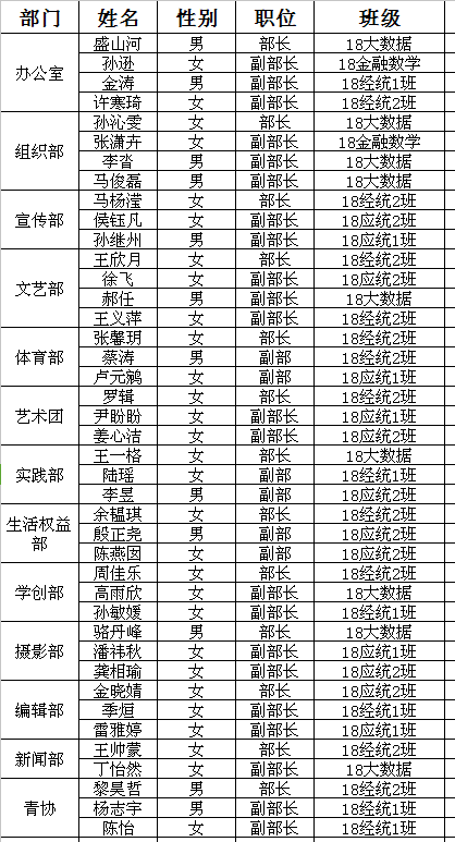 通過個人報名,現場競聘演說,學院老師面試,經院學生工作辦公室研究決定,現將名單公布如下: