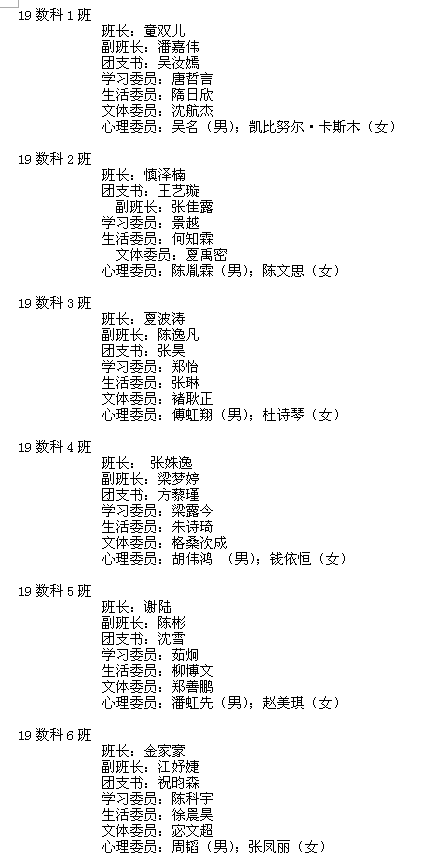 通過個人報名,現場競聘演說,學院班導老師面試,經學生工作辦公室研究決定,現將2019級班委名單(初定)公布如下: