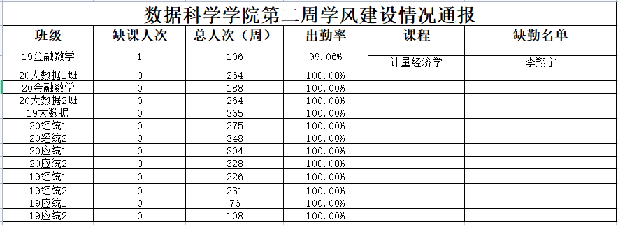 為進(jìn)一步培育優(yōu)良學(xué)風(fēng),構(gòu)建我院學(xué)風(fēng)建設(shè)的長(zhǎng)效機(jī)制,營(yíng)造良好的學(xué)習(xí)氛圍,推進(jìn)內(nèi)涵建設(shè),構(gòu)建優(yōu)良院風(fēng),學(xué)院對(duì)所有大一、大二班級(jí)統(tǒng)一上的課程進(jìn)行了課前全覆蓋點(diǎn)名?,F(xiàn)將點(diǎn)名情況做如下通報(bào)。