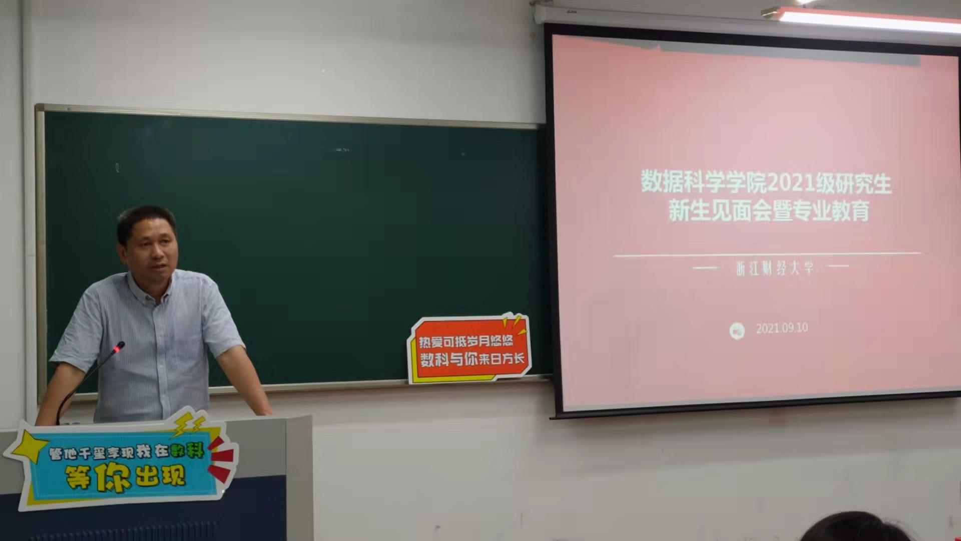 9月10日上午,新葡萄8883官網AMG2021級研究生新生見面會暨專業教育會在6號樓109教室舉行,院長洪興建、黨委書記段雪輝、副院長周銀香、導師代表、科研辦主任、學辦主任、研究生輔導員以及全體21級碩士、博士研究生出席本次大會。