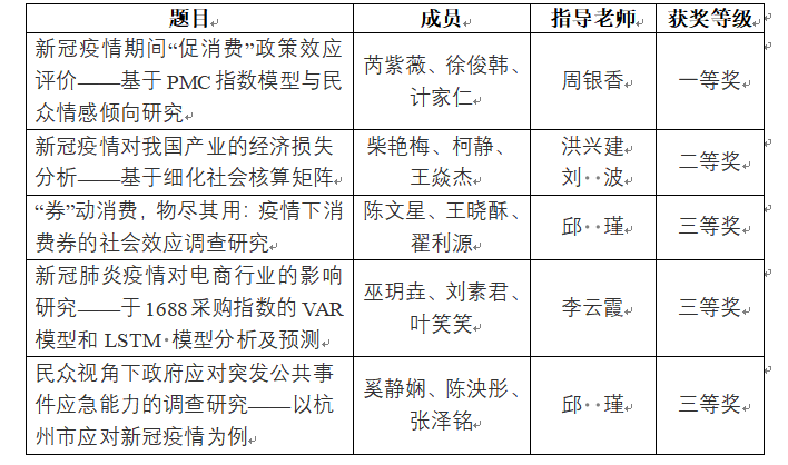 本屆大賽由中國統計教育學會和全國應用統計專業學位研究生教育指導委員會聯合主辦,中南財經政法大學統計與數學學院和徐州工程學院數學與統計學院聯合承辦。本屆研究生統計建模大賽歷時9個月,全國271支隊伍參賽,最終評選一等獎20支、二等獎40支、三等獎80支。